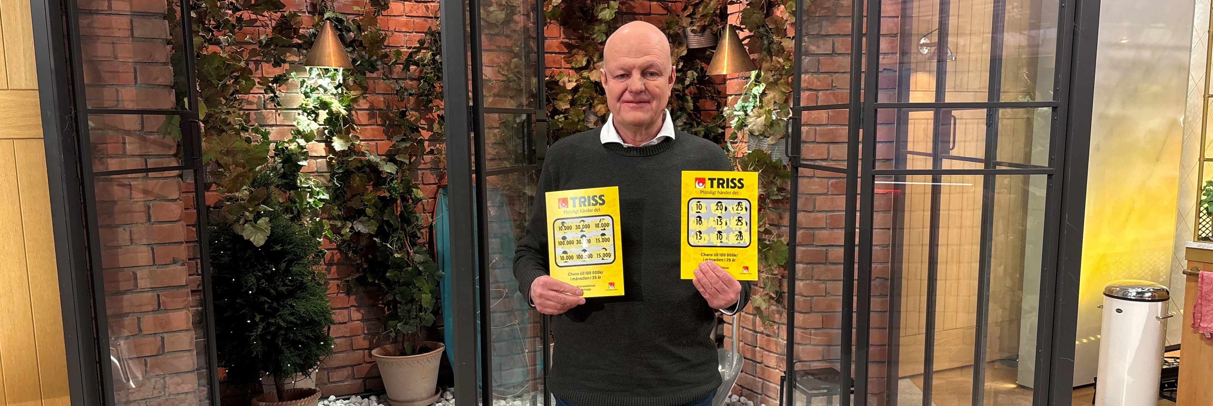 2026-03-09: Jonas från Örebro fick en Alla hjärtans dag-present som verkligen gav utdelning. I morgon-tv skrapade han fram 1,2 miljoner kronor på Triss – pengar som kan bli startskottet för parets dröm om en sommarstuga vid vattnet.